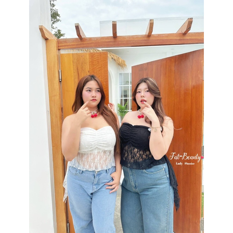 (FB) เกาะอกลูกไม้ จับจีบช่วงอก มีหางกุยกาย เหมาะกับซัมเมอร์มาก เสื้อผ้าสาวอวบอ้วน พลัสไซส์ ไซส์ใหญ่