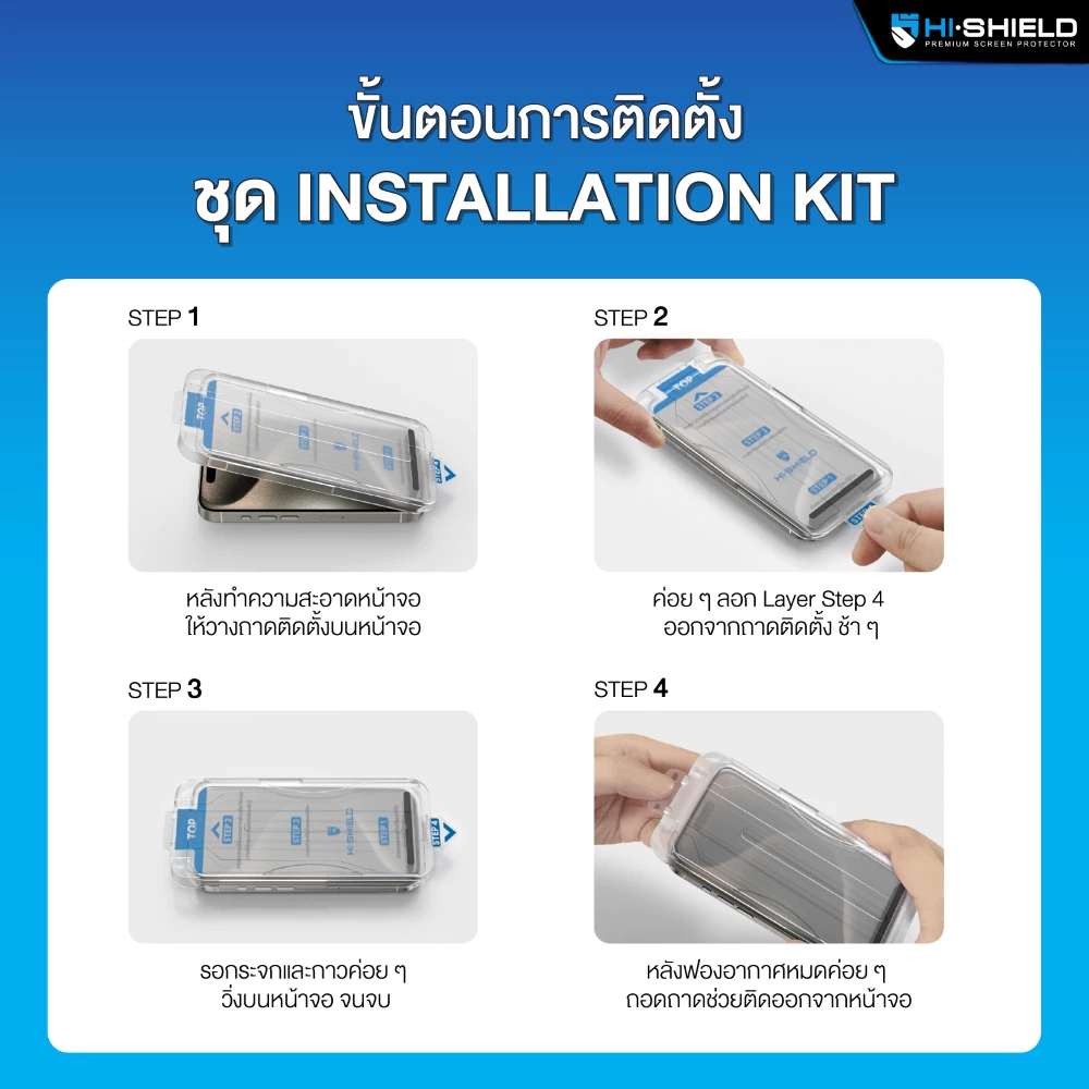 Hi-Shield [ติดตั้งง่าย] ฟิล์มกระจก 2.5D Super Strong Kit รับประกัน 180 วัน IP16/15/14/Plus/Pro Max
