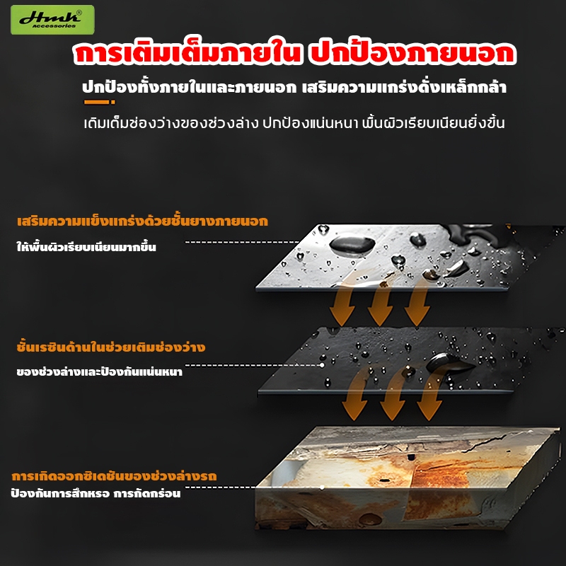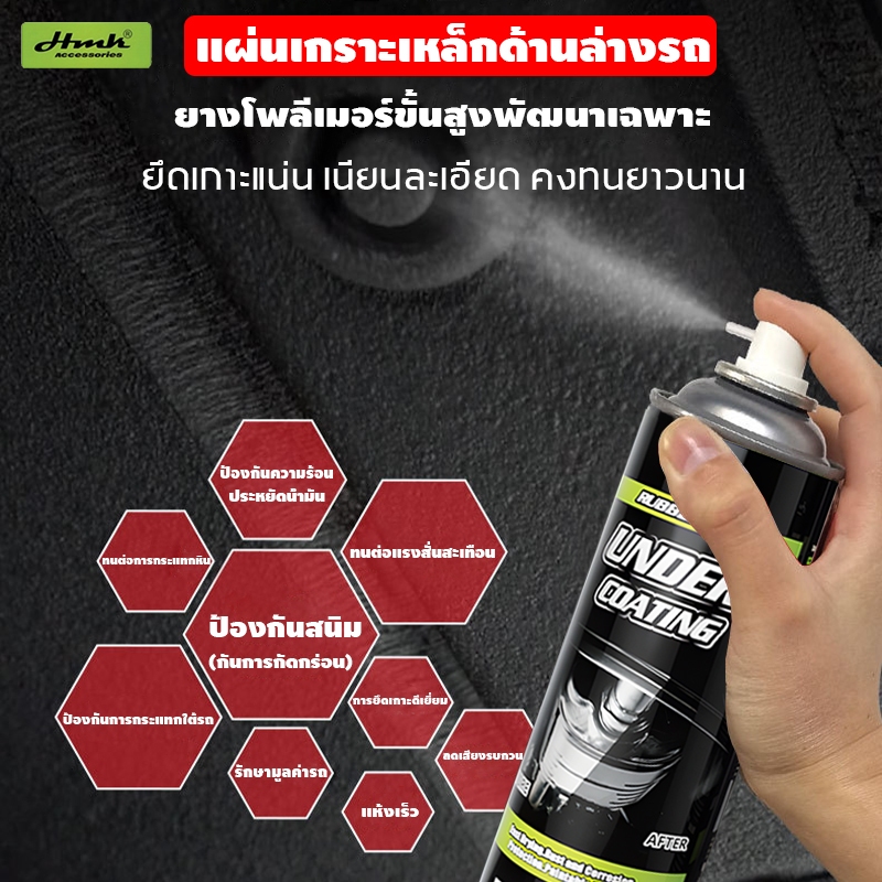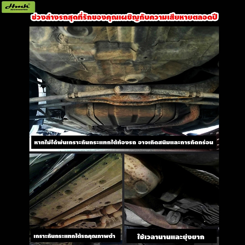 HMKสีกันสนิมใต้รถ ป้องกันสนิมและการกัดกร่อนทนทานต่อรอยขีดข่วนจากทรายและหิน สเปรย์พ่นกันสนิมรถยนต์