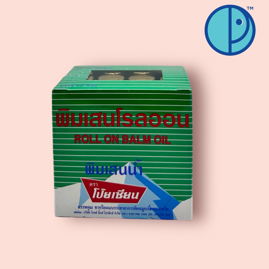 (ขายยกโหล) พิมเสนน้ำ ตราโป๊ยเซียน Pim-saen Balm oil Poy-sian แบบโรลออน ขวดแบน และสำลี