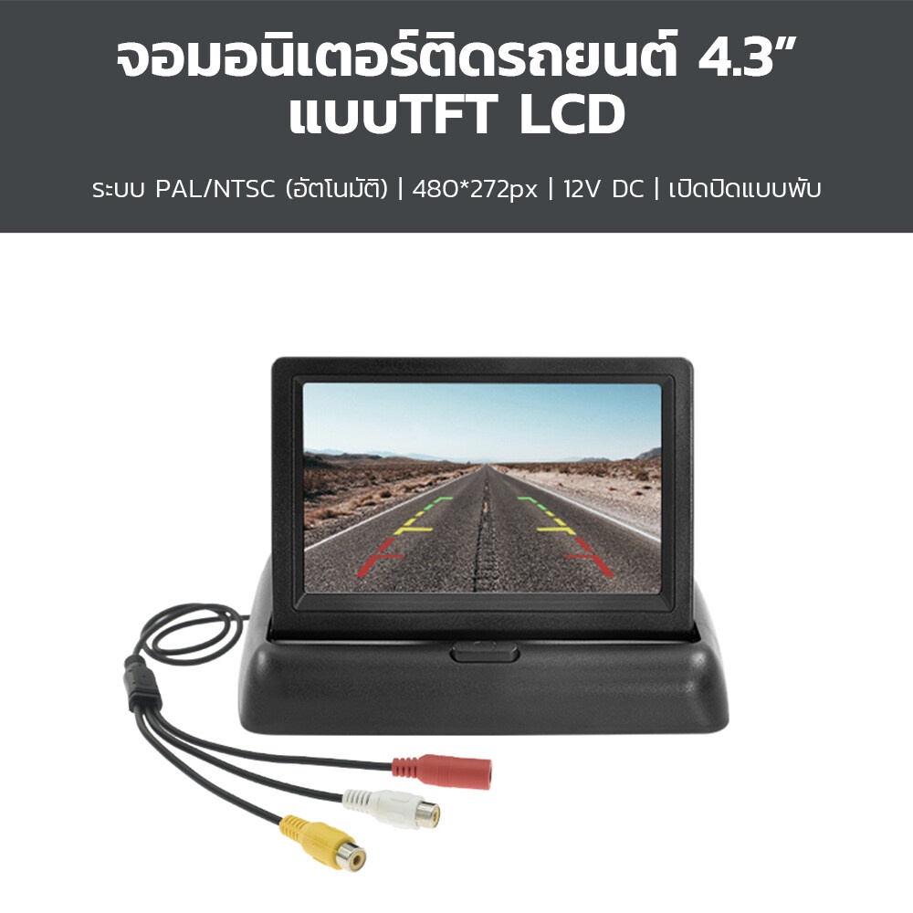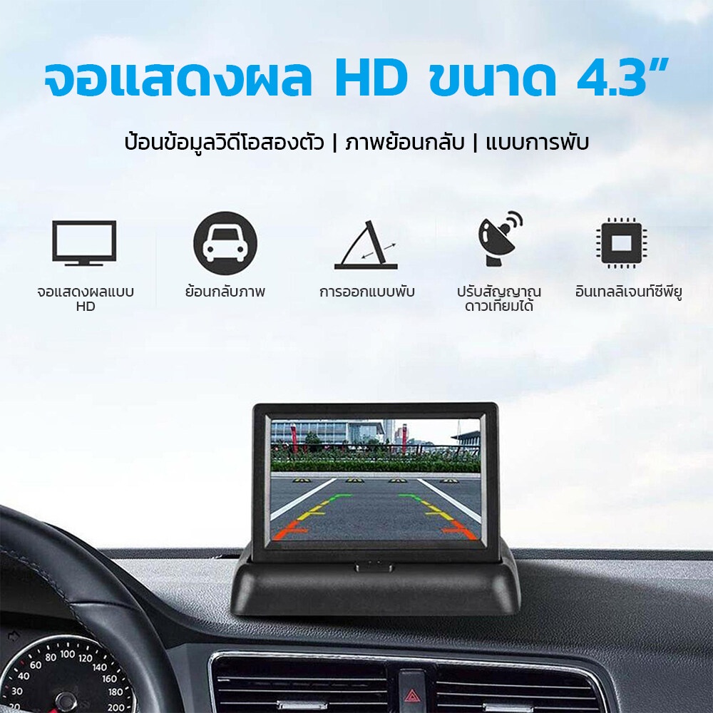 จอภาพรถยนต์ 4.3นิ้วหน้าจอ พับได้ในรถยนต์ กล้องถอยหลัง HDกล้องก ล้างคืนชัดเจนHD กล้องหน้ารถยนต์