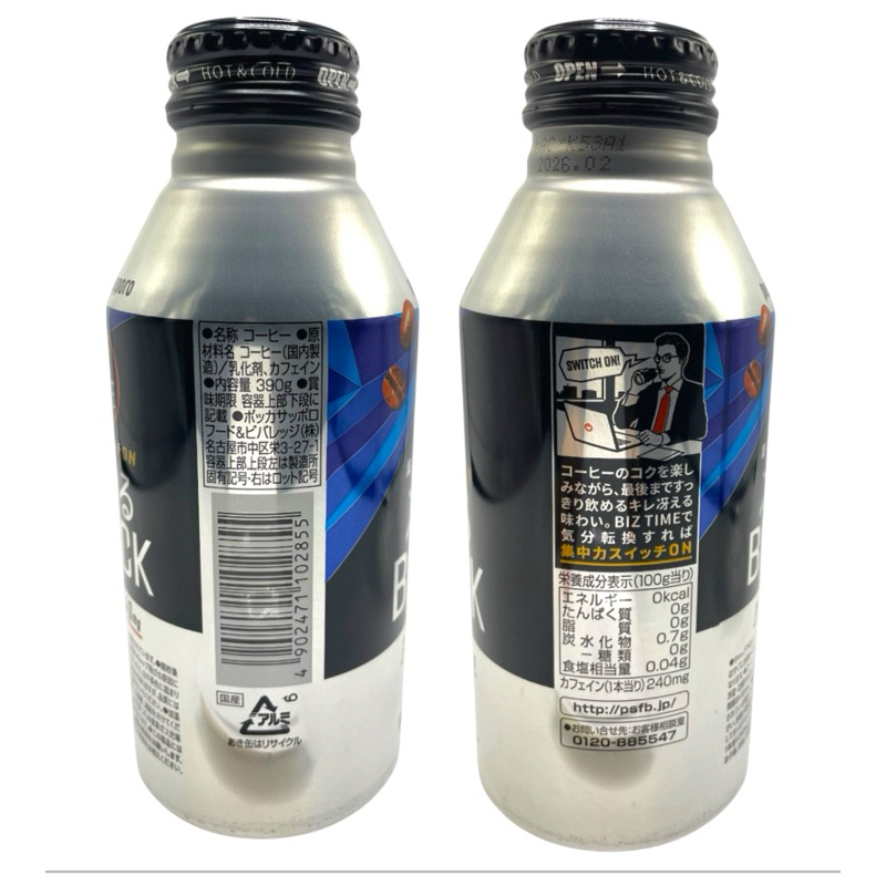 ป๊อกก้า ซัปโปโร BIZTIME ซาเอรุ แบล็ค 390ก. กระป๋องกาแฟไม่มีน้ำตาล