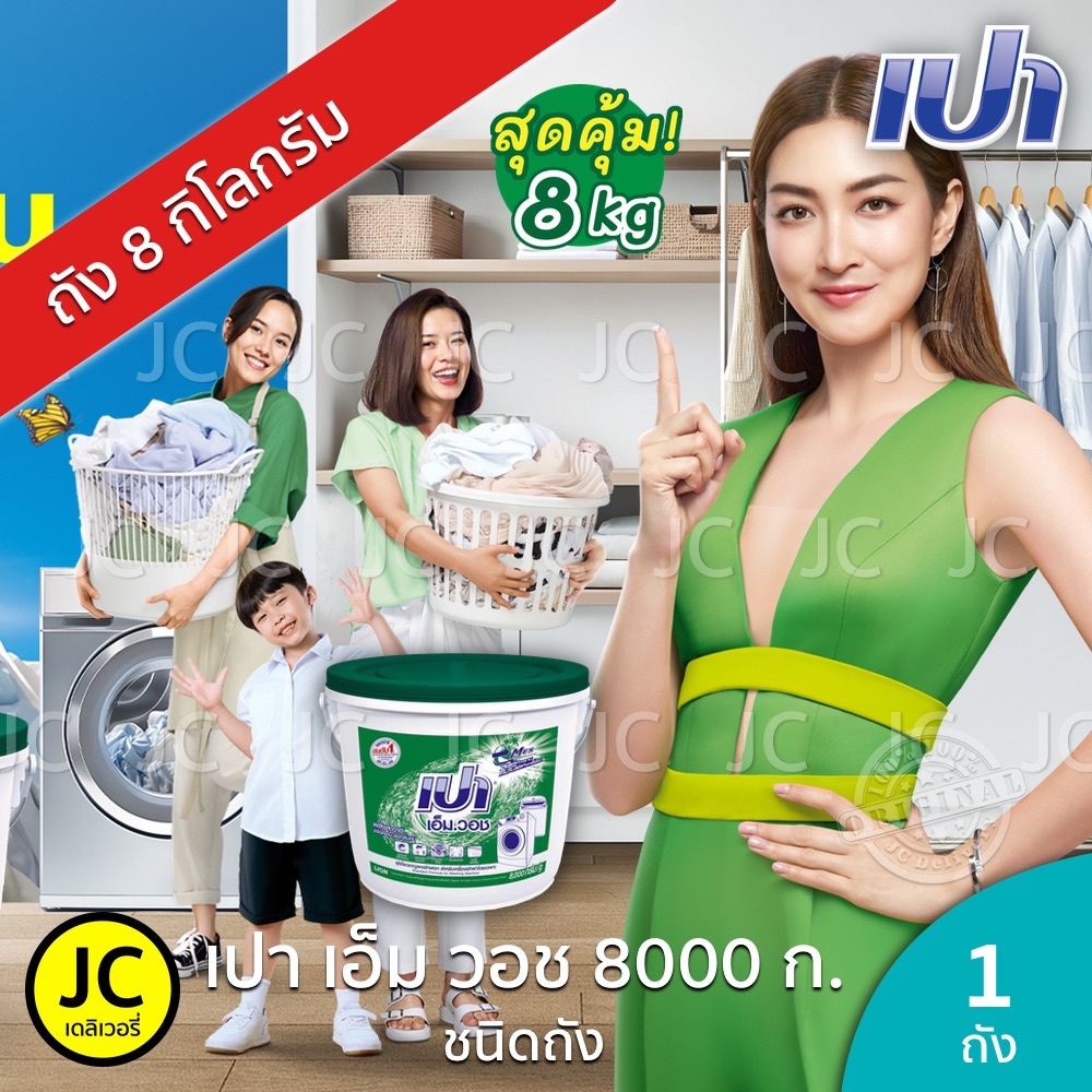 เปา เอ็ม วอช ถัง 8000 กรัม ผงซักฟอก เครื่องซักผ้า ฝาบน & ฝาหน้า Pao M Wash Detergent 8 kg. เปาถัง