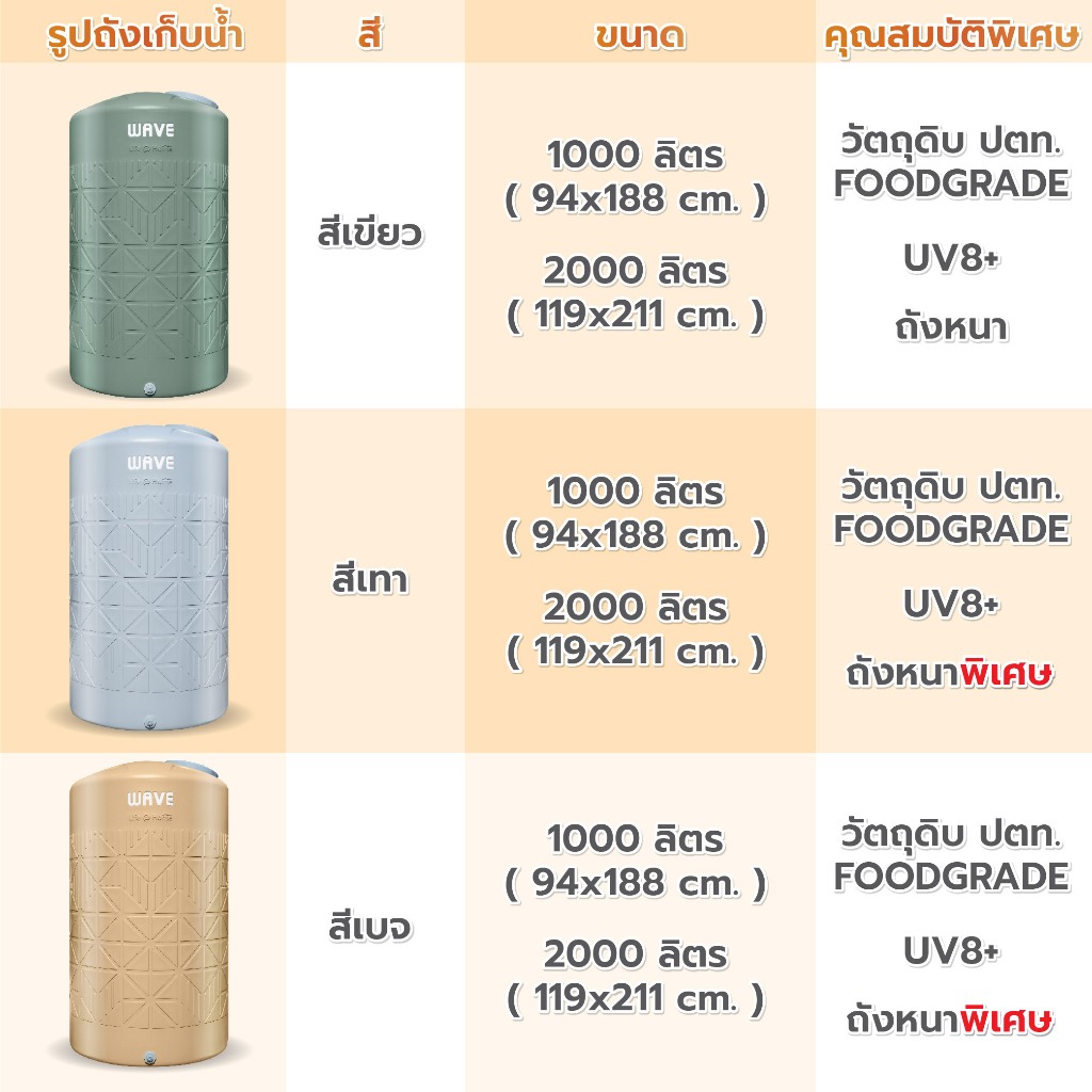 พร้อมส่ง!! แท้งน้ำ ถังเก็บน้ำ1000-2000 ลิตร WAVE รุ่น HOMEMATE โฮมเมท รับประกัน15ปี ป้องกันตะไคร่น้ำ มอก