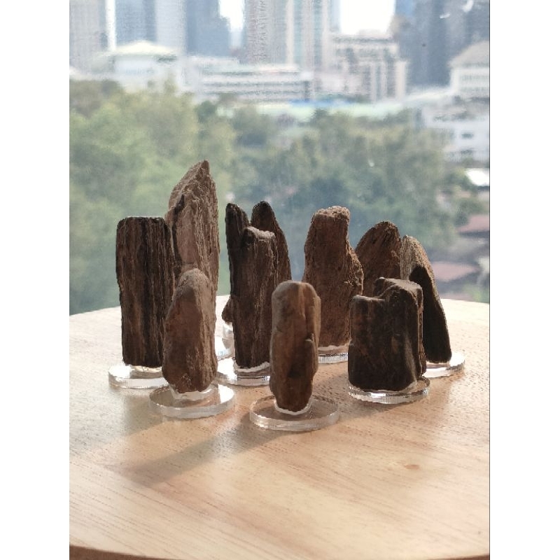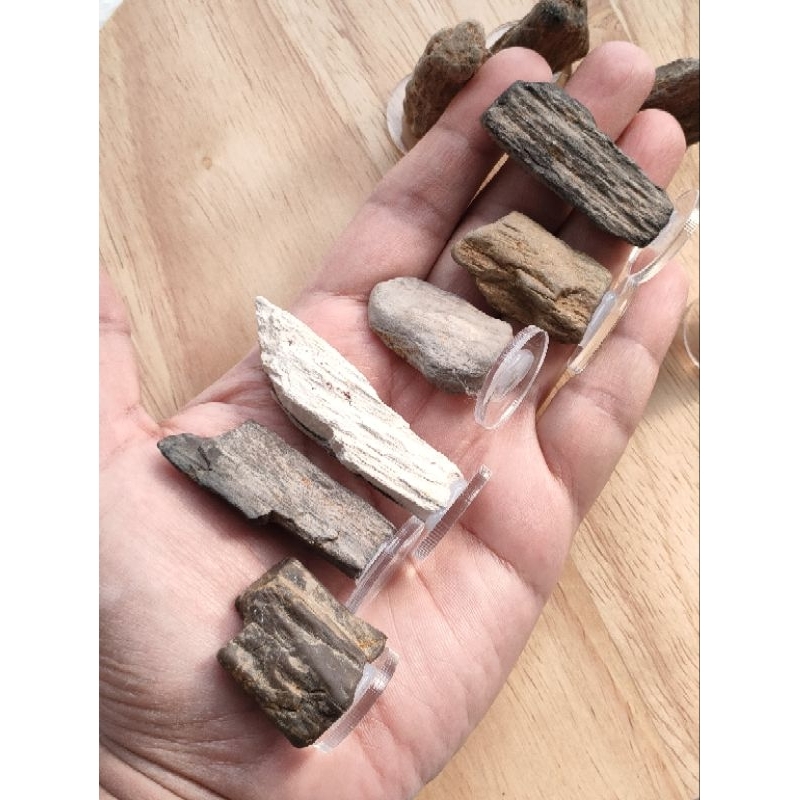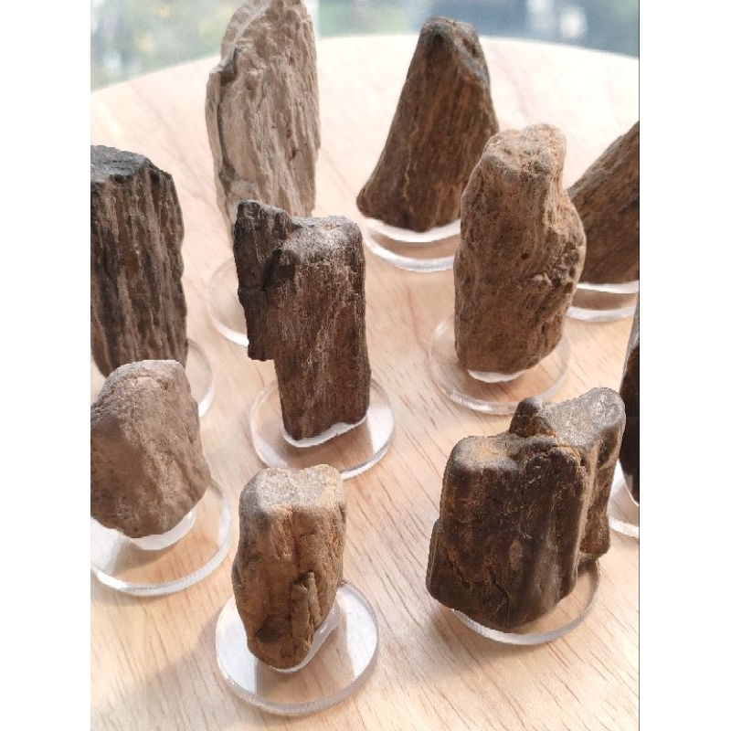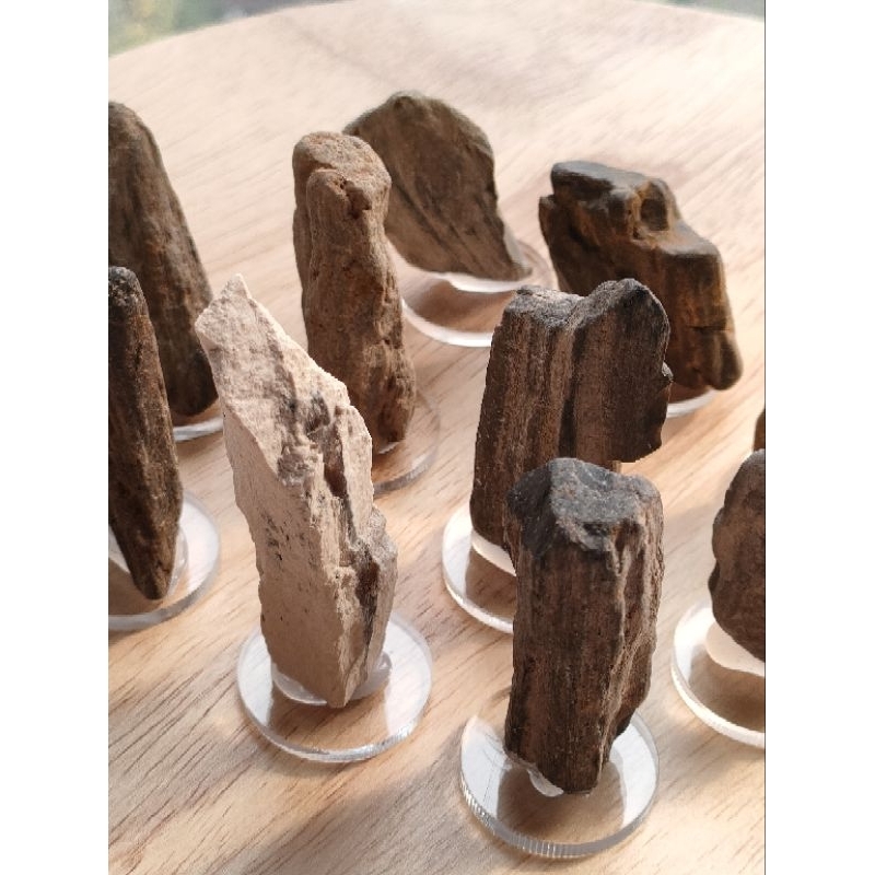 ฟอสซิลไม้กลายเป็นหิน ขนาดเล็ก ของเเท้ บนแผ่นอคิริค ไว้ตั้งโชว์ หรือสะสมสำหรับเรียนรู้ (⭐สินค้าเเบบสุ่มเเรนด้อมชิ้นครับ )