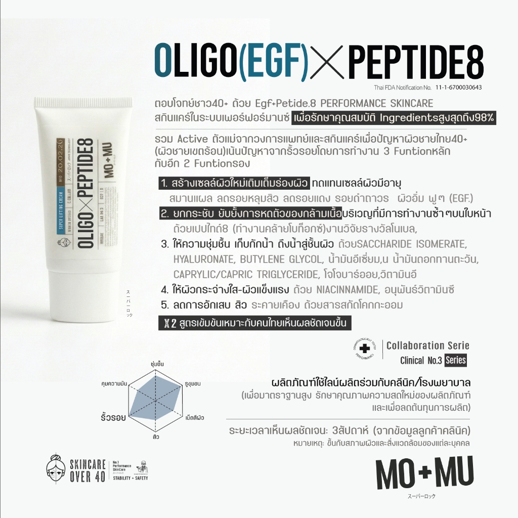MO+MU EGF.(OLIGO)x PEPTIDE.8 SUPER-LIFTING CREAM เวชสำอางค์ผิวหญิง40+ ครีมล็อคอายุผิว ลดริ้วรอย (ทำงานคล้ายโบท็อกซ์)