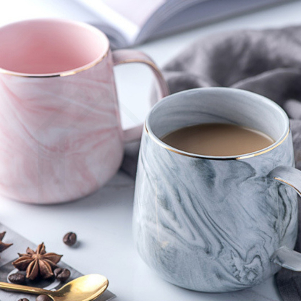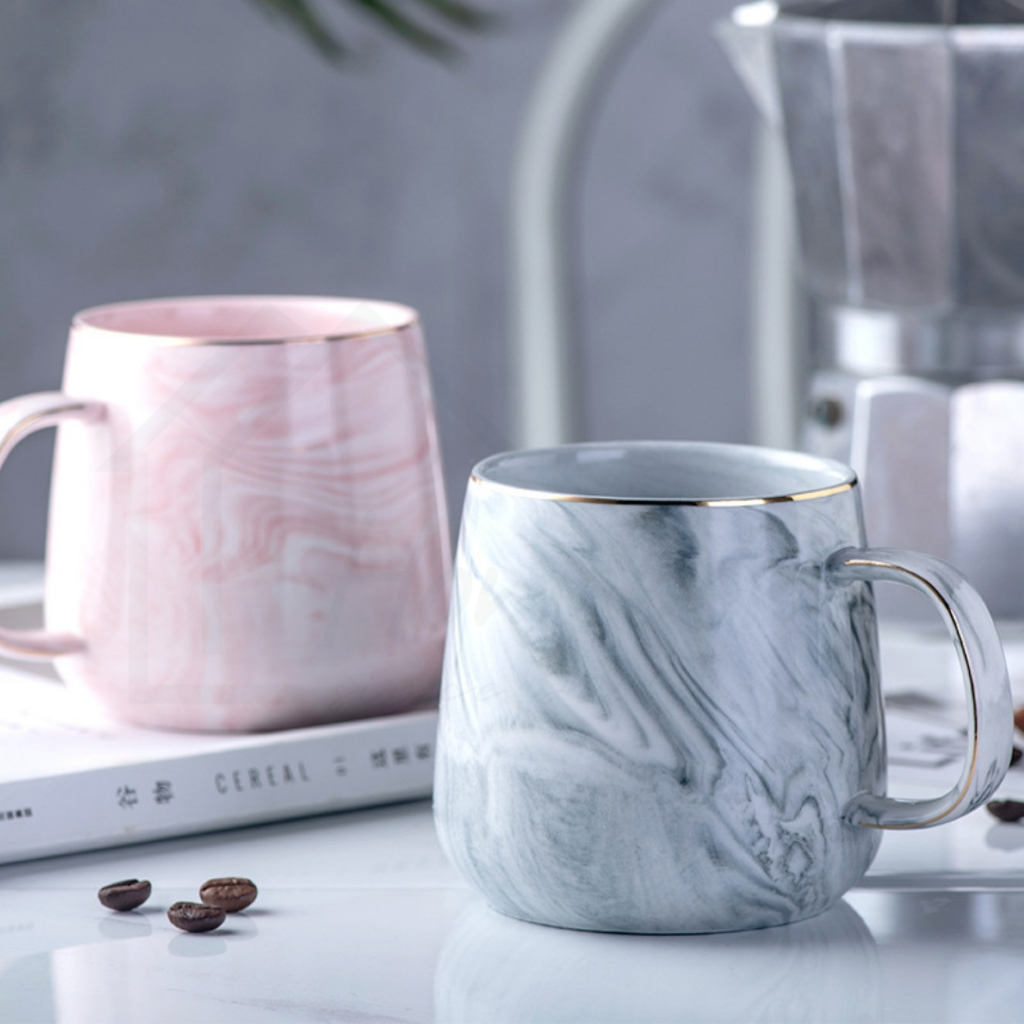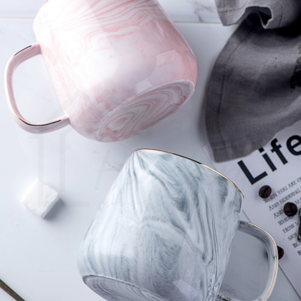 HOMEBERG แก้วน้ำ แก้วกาแฟ แก้วเซรามิค ใช้สำหรับใส่เครื่องดื่มร้อนเย็นลายหินอ่อนสีพาสเทลชมพูฟ้าสวยงาม