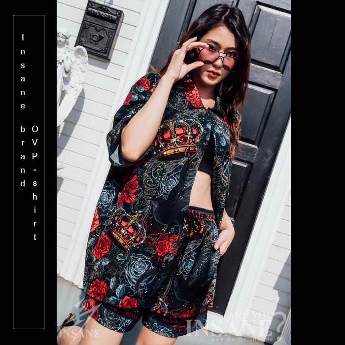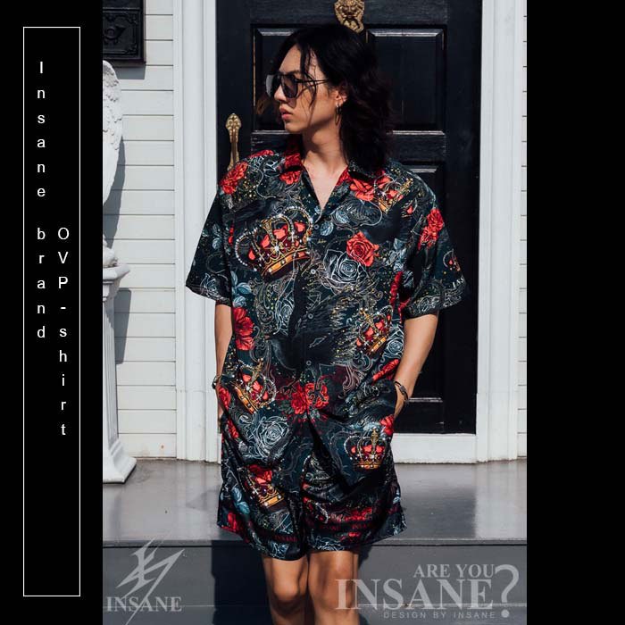 CROW WITH CROWN เสื้อเชิ้ตพิมพ์ลาย ออกแบบตัดเย็บอย่างดี ลิขสิทธิ์เฉพาะ INSANEBRAND