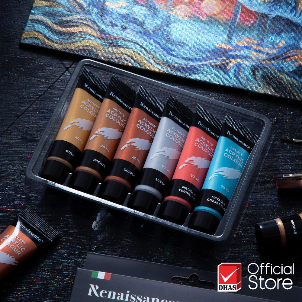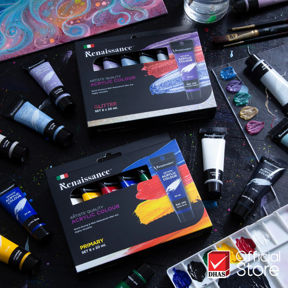 Renaissance สีอะคริลิค ชุดสีอะคริลิค 20 มล. 6 สี จำนวน 1 กล่อง