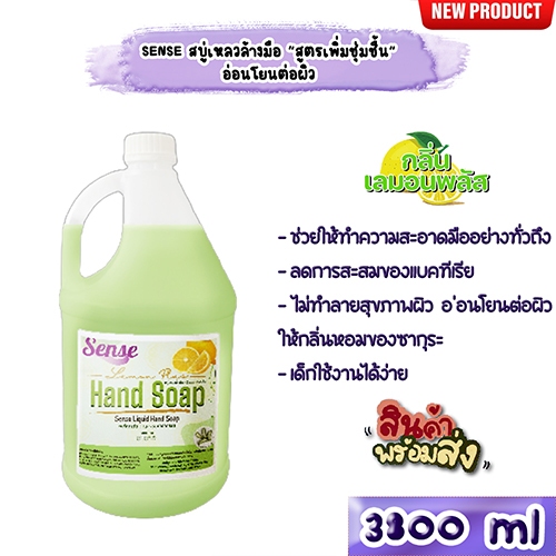 SENSE สบู่เหลวล้างมือ สูตรพิ่มความชุ่มชื้น อ่อนโยนต่อผิว กลิ่นเลมอนพลัส ขนาด 3800 ml