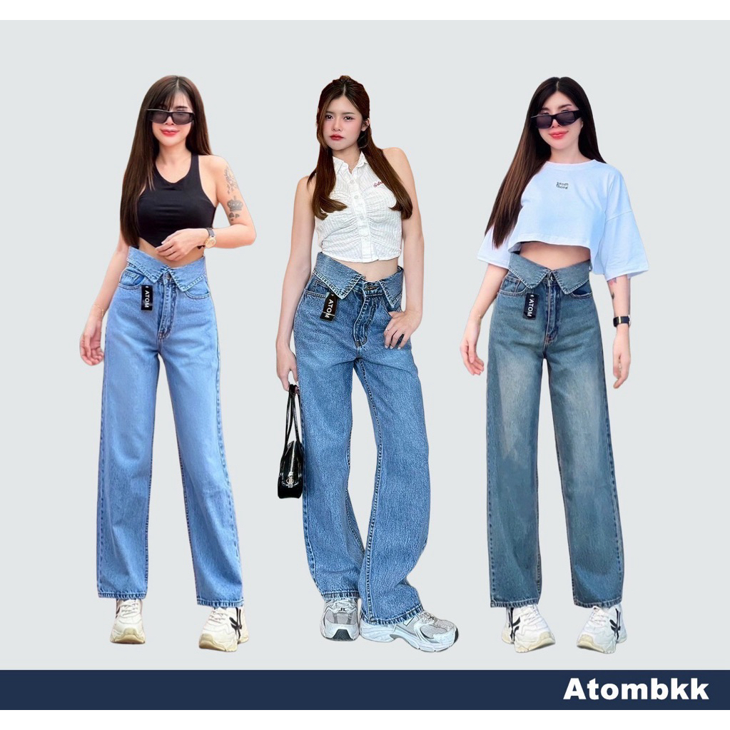 กางเกงยีนส์ขากระบอกATOMรุ่น7022(เอวพับ)