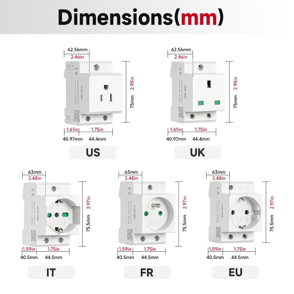 GEYA 1PCS US UK EU FR IT มาตรฐาน Din Rail Socket Outlet ปลั๊ก 16A 230V อะแดปเตอร์สายไฟ CE