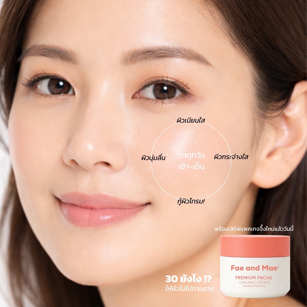 Fae and Mae เฟ แอนด์ เม (ซอง) มอยส์บูสผิวหน้าใส ออร์แกนิก อิ่มน้ำ ฉ่ำวาว PREMIUM FACIAL ORGANIC CREAM 7 ml