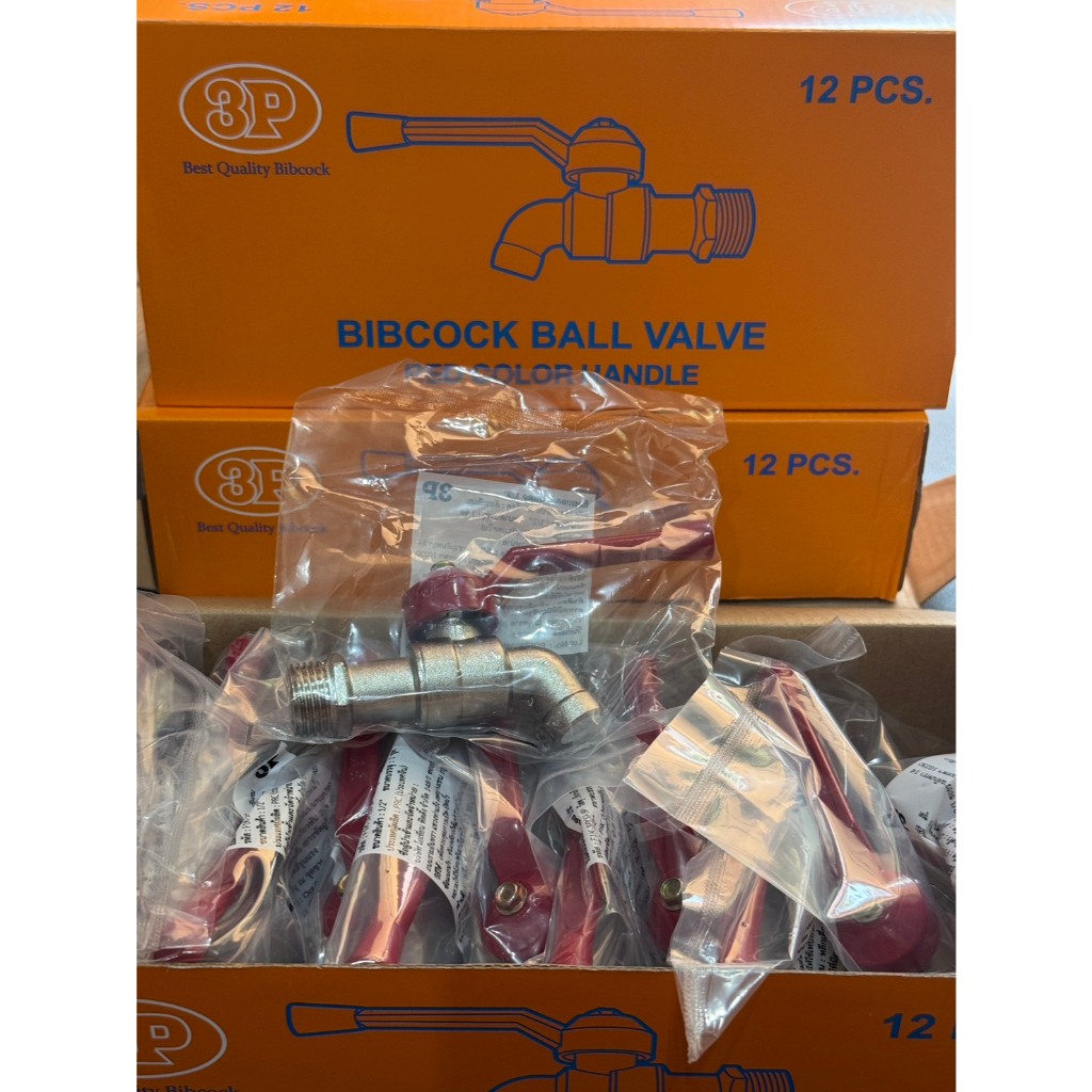 *(ส่ง12ตัว) ก๊อกบอล ก๊อกน้ำด้ามแดง 3P SAZA ก๊อกน้ำ1/2"(4หุน)*จำหน่ายสินค้า ยกกล่อง12ตัว (มี มอก.✔️)