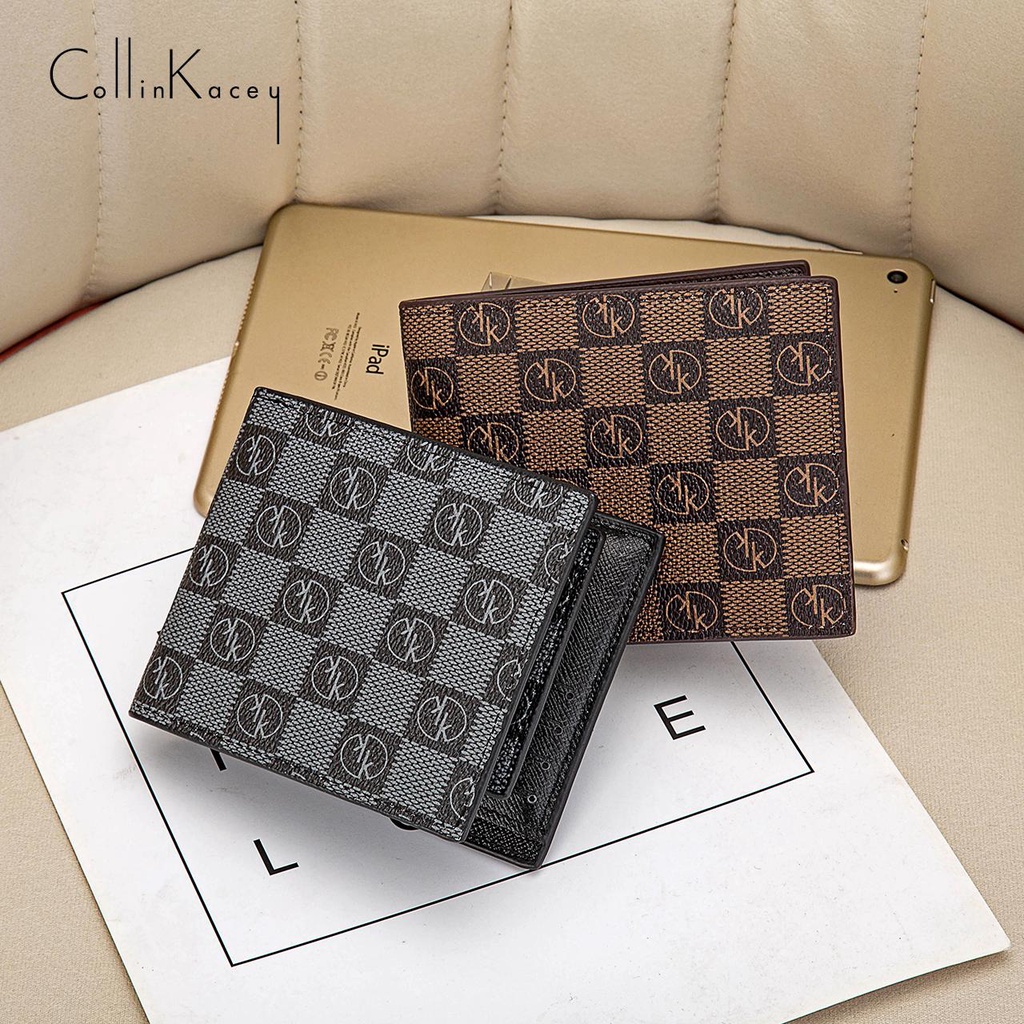 Collin Kacey K1 กระเป๋าสตางค์แฟชั่น กระเป๋าสตางค์ผู้ชายลายสก๊อต รุ่นใหม่ล่าสุด พร้อมกล่องของขวัญ
