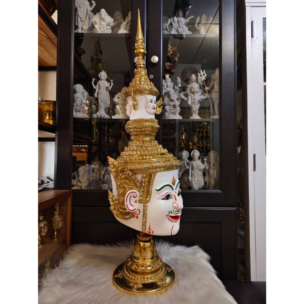 เศียรครู พระพรหม ขนาดครอบศรีษะ งานคุณภาพ โครงกระดาษ ปั้นหน้าด้วยผงไม้สัก ใส่ตาแก้ว ปิดทองเค ประดับพลอย แถมฐานไม้สีแดงฟรี