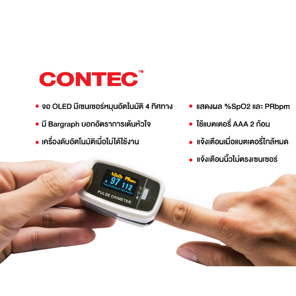เครื่องวัดออกซิเจนปลายนิ้ว Contec รุ่น CMS50D ประกันศูนย์ไทย 1 ปี