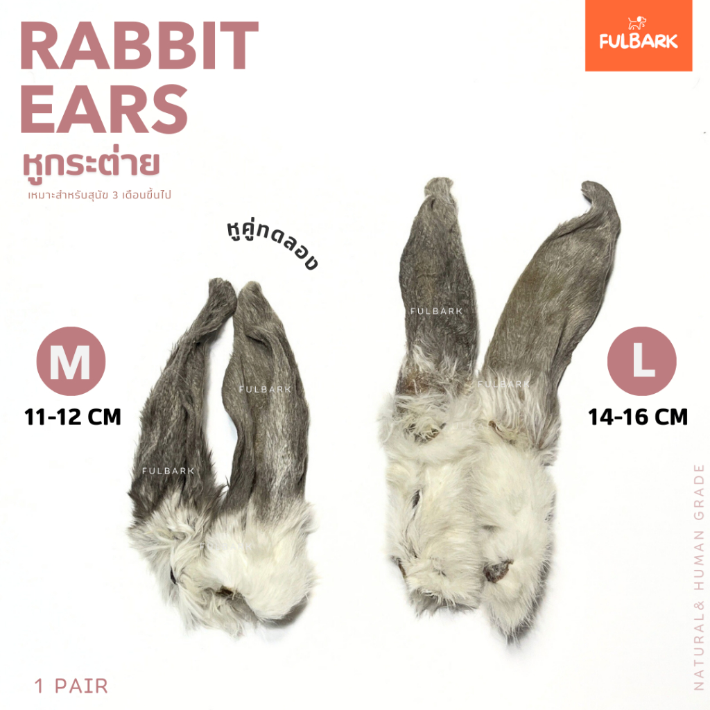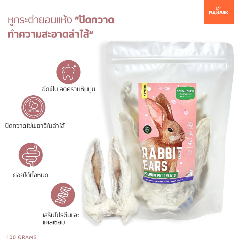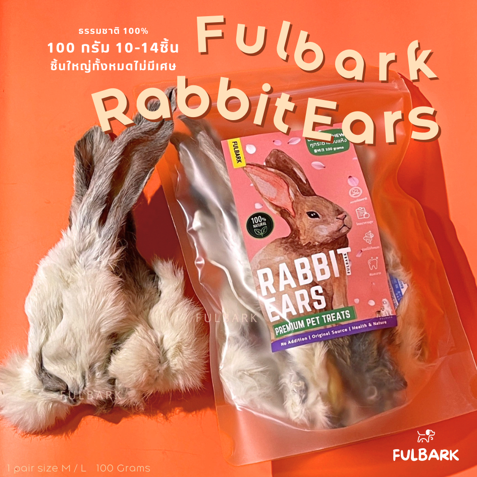 (คัดเกรดAAสะอาด) FULBARK หูกระต่ายอบแห้ง ขนมสุนัข-ขนมแมว-ขนมขัดฟัน Premium โปรตีนสูง ชิ้นใหญ่ 100กรัม