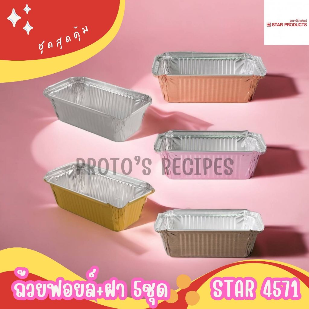 ถ้วยฟอยล์ ถาดฟอยล์ ฟอยล์อบขนม Star รุ่น4571 5ชิ้น/ชุด พร้อมฝา 520ML