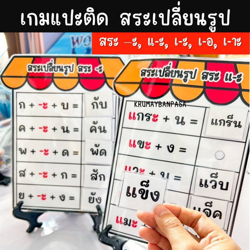เกมแปะติดสระเปลี่ยนรูปภาษาไทย เกมสื่อการสอน งานสำเร็จเคลือบร้อน ติดตีนตุ๊กแก สื่่อการสอนภาษาไทย