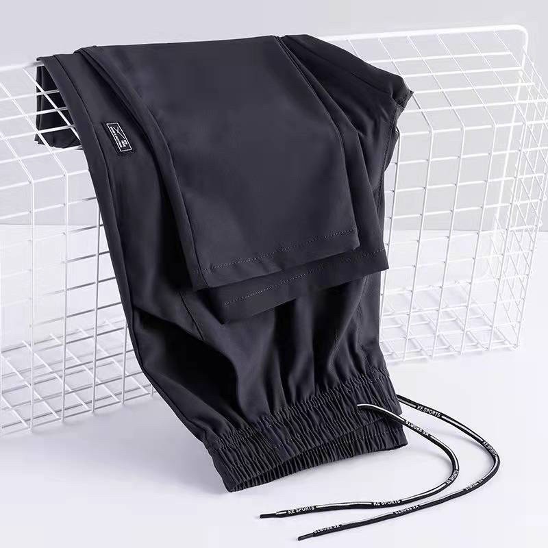แฟชั่นน้ำแข็งผ้าไหมกางเกงกีฬาตรงทรงกระบอกหลวมการซึมผ่านของอากาศที่ดีแห้งเร็วความยาวขาเด้งสูง