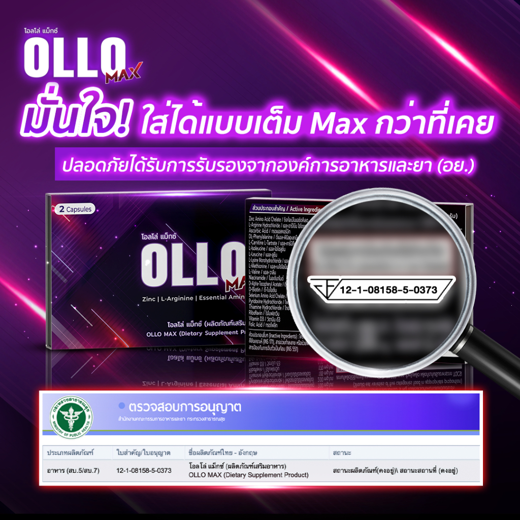 [โปรสุดคุ้ม] OLLO Max โอลโล่ แมกซ์ 5 กล่อง (ใหม่ กล่องละ 4 แคปซูล)