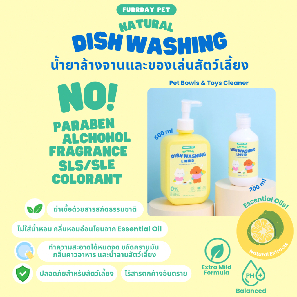 Furrday Pet น้ำยาล้างจานชามสัตว์เลี้ยง ไม่ใส่สี ไม่ใส่กลิ่น อ่อนโยนปลอดภัยต่อสุนัข แมว กำจัดคราบ ไร้สารเคมีที่รุนแรง