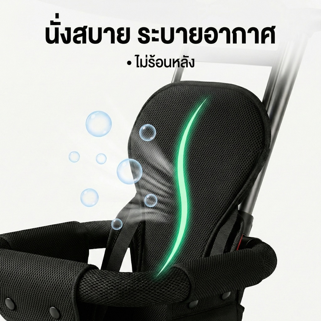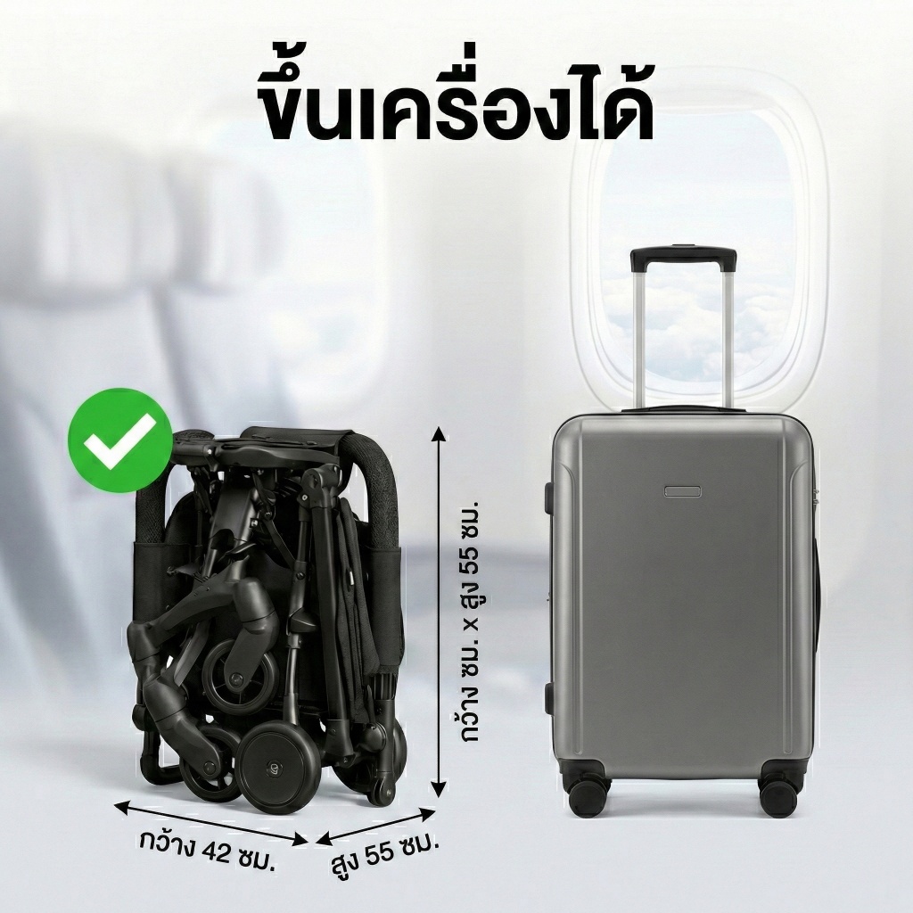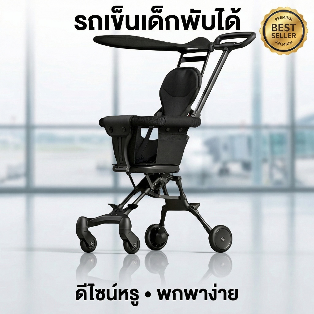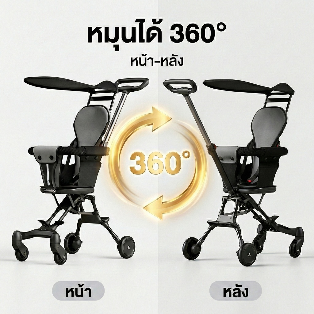 Beige รถเข็นเด็ก รถเข็นเด็กพับได้ น้ำหนักเบา 4 ล้อ พกพาสะดวก แถมเบาะ + ตะกร้า หมุนได้360°