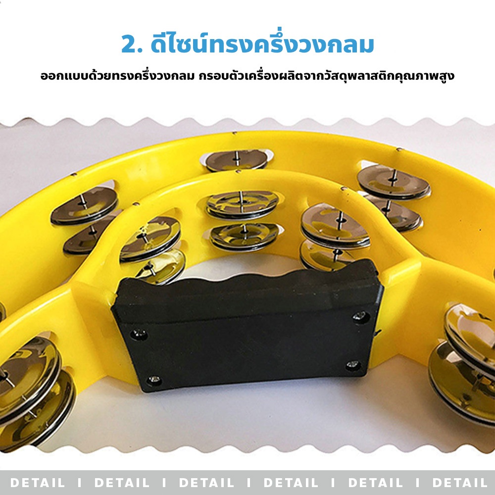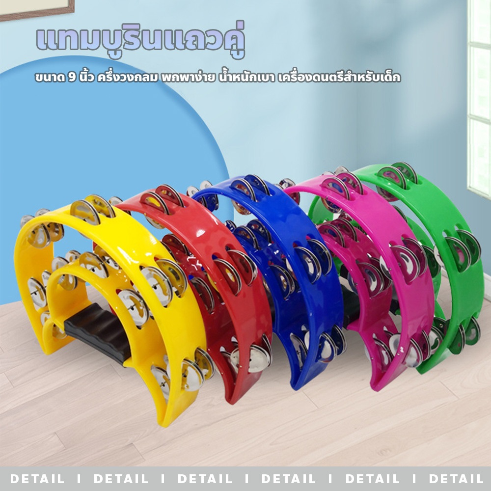 chishop แทมบูริน แถวคู่ ขนาด9นิ้ว ครึ่งวงกลม พกพาง่าย น้ำหนักเบา เครื่องดนตรีสำหรับเด็ก