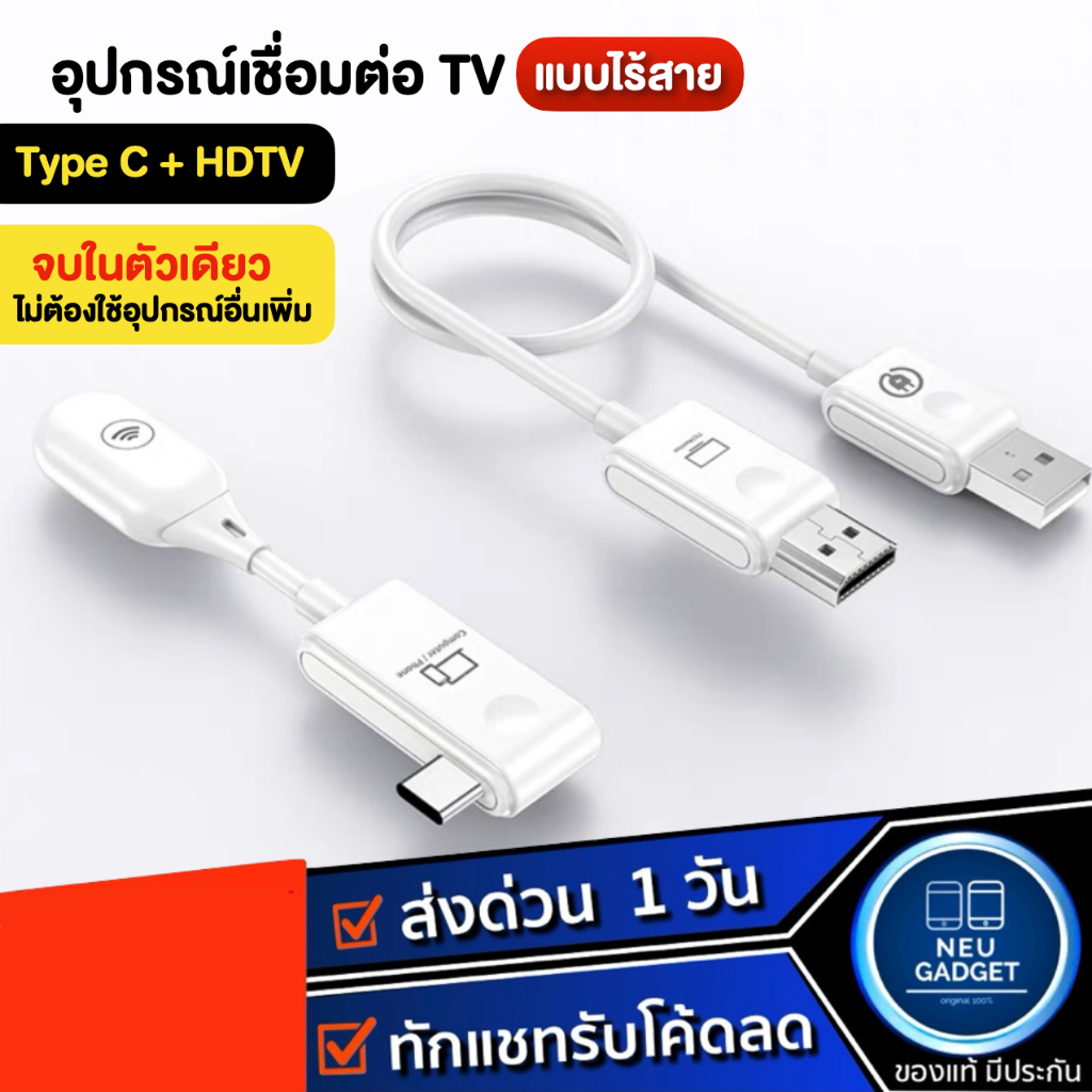 [ใหม่ล่าสุด❗️] อุปกรณ์แชร์หน้าจอไร้สาย 1080P HDTV to Type-C HDMI Wireless Transmitter Receiver รับสัญญาณถึง 50 เมตร