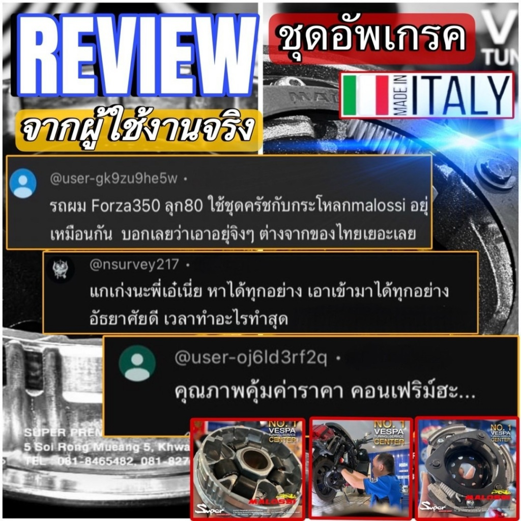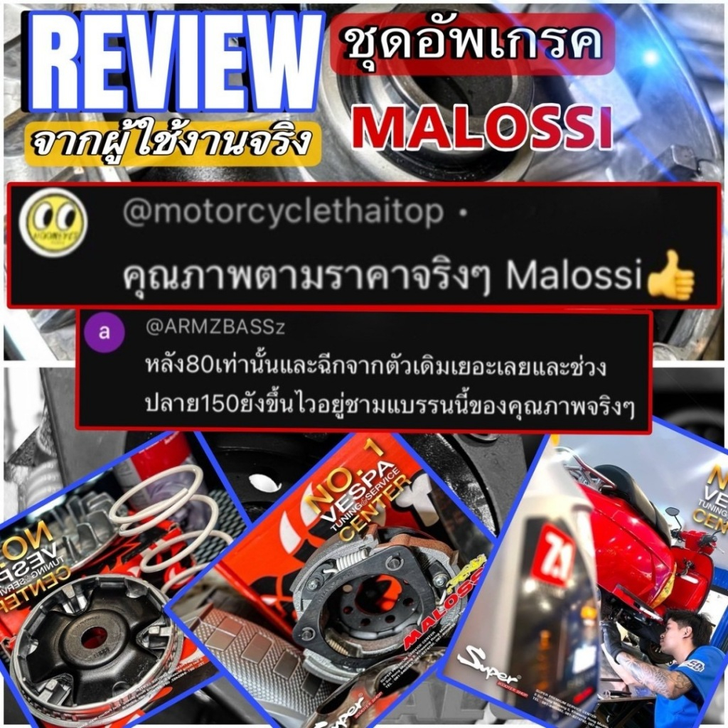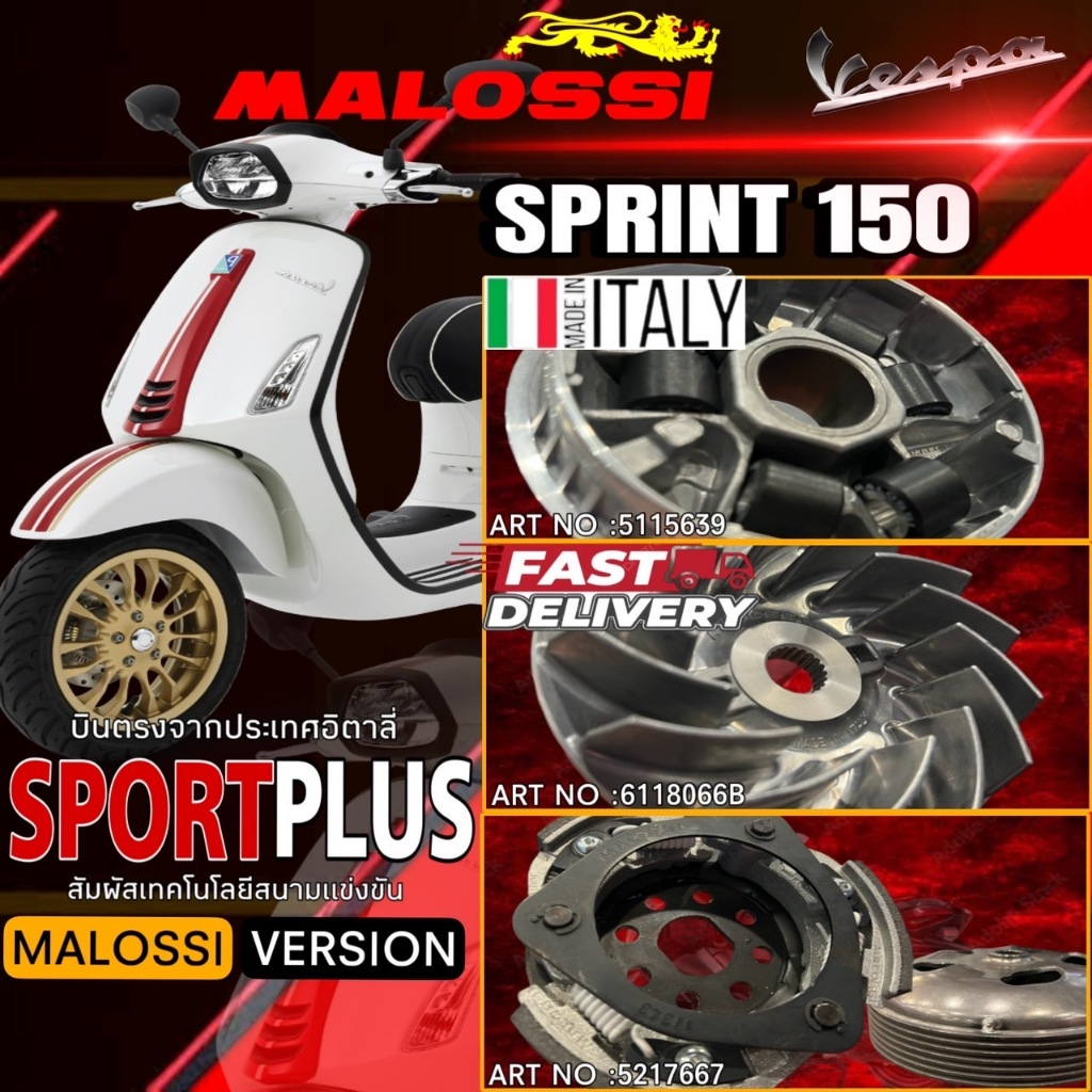 ชุดอัพเกรดระบบขับเคลื่อน MALOSSI สำหรับ SPRINT PRIMAVERA 150 3 V , 150 I-GET NO: 5115639 NO:5217667 NO:6118066B