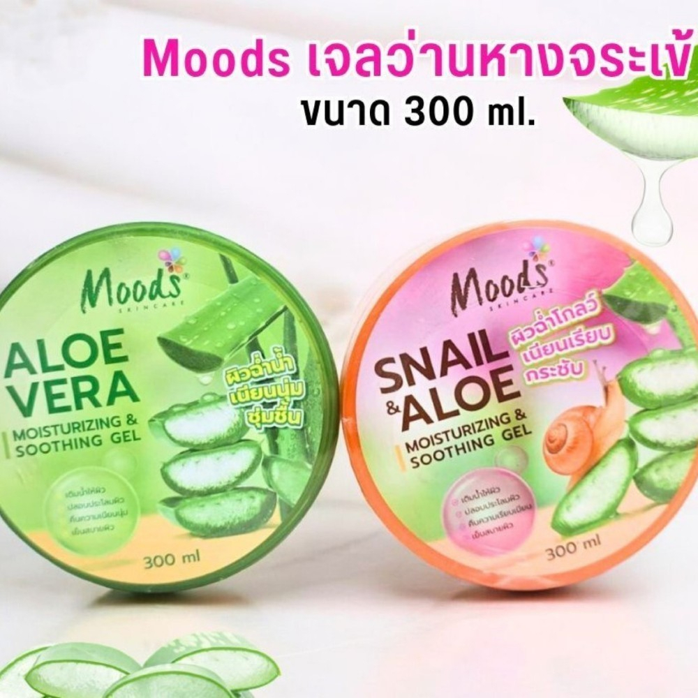 (1 ชิ้น) Moods เจลว่านหางจระเข้ 100% Aloevera Soothing Gel ขนาด 300ml