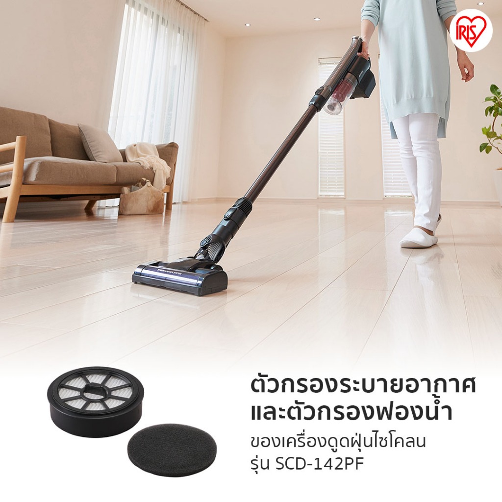 IRIS OHYAMA (อะไหล่แท้) ตัวกรองระบายอากาศ และตัวกรองฟองน้ำ สำหรับเครื่องดูดฝุ่น ไร้สาย รุ่น SCD-142PF