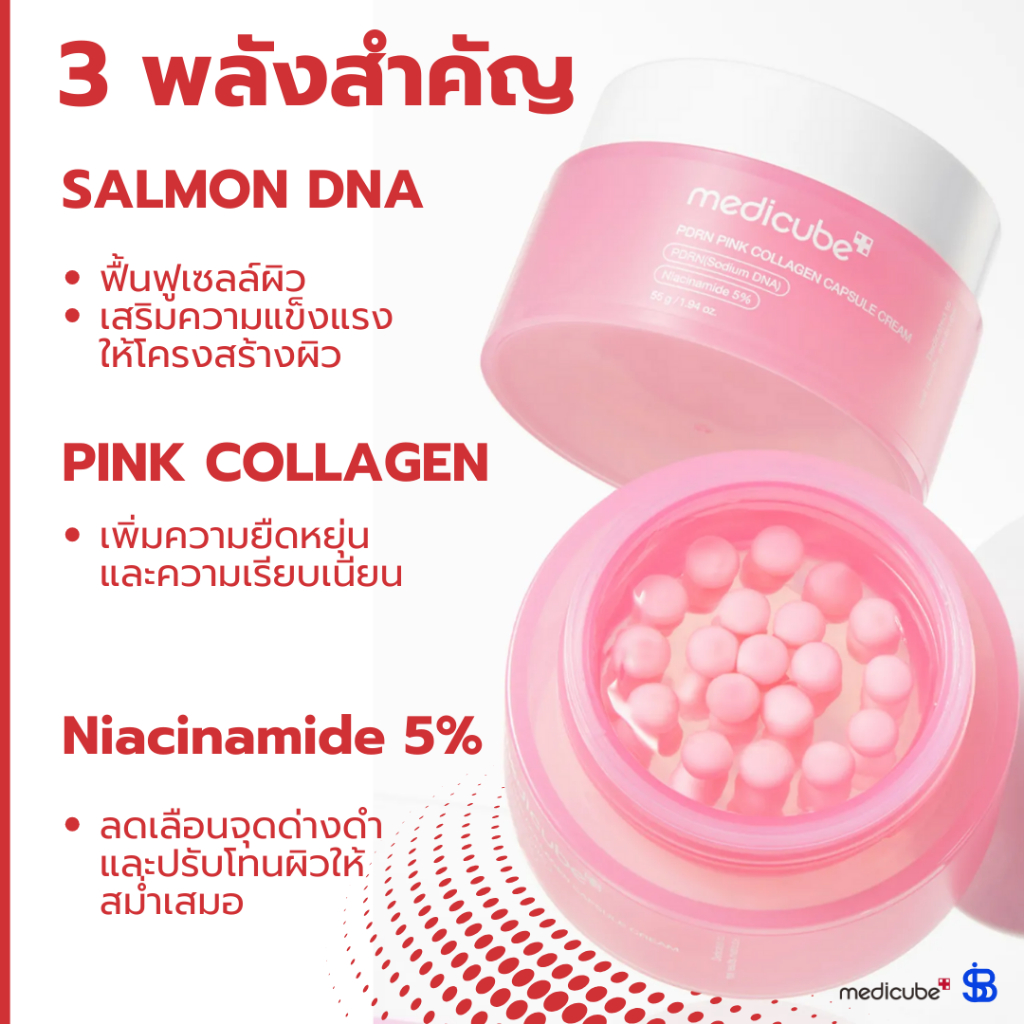 MEDICUBE PDRN Pink Collagen Capsule Cream 55ml | ครีมแคปซูลสีชมพู เติมน้ำผิว กระจ่างใส อ่อนเยาว์ [SIB.SEO]