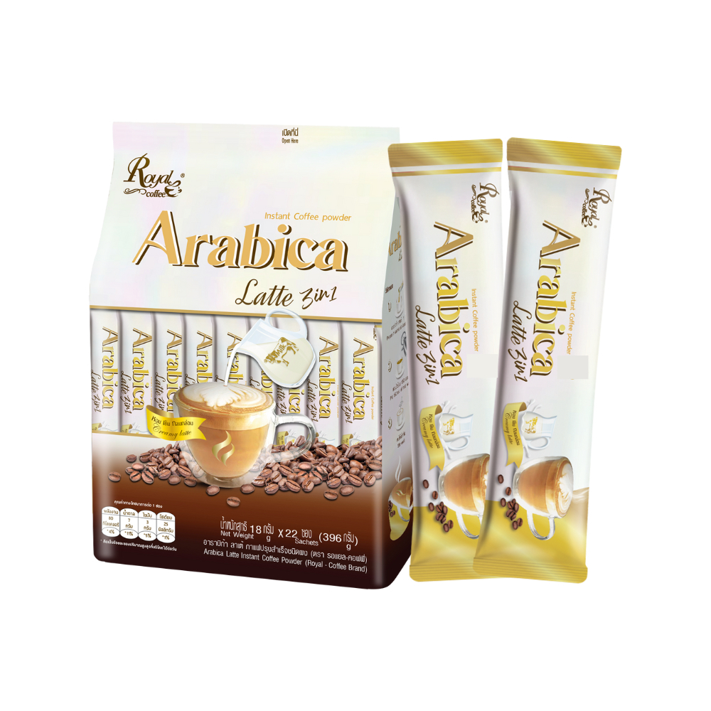 Royal Coffee Arabica Latte 3in1 รอแยล คอฟฟี่ อาราบิก้า ลาเต้ 18 กรัม 22 ซอง [1 ถุง] FF 5213 กาแฟผสมนม เข้มข้น กลมกล่อม