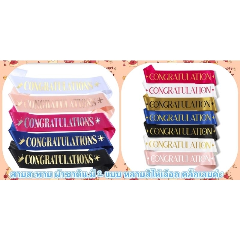 (ส่งจากไทย🇹🇭)สายสะพาย Congratulation ผ้าซาติน แบบสวม สายสะพายรับปริญญา สายสะพายปัจฉิม