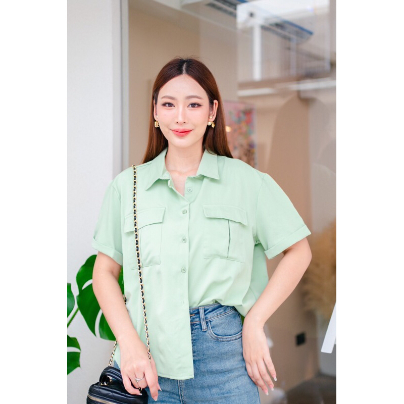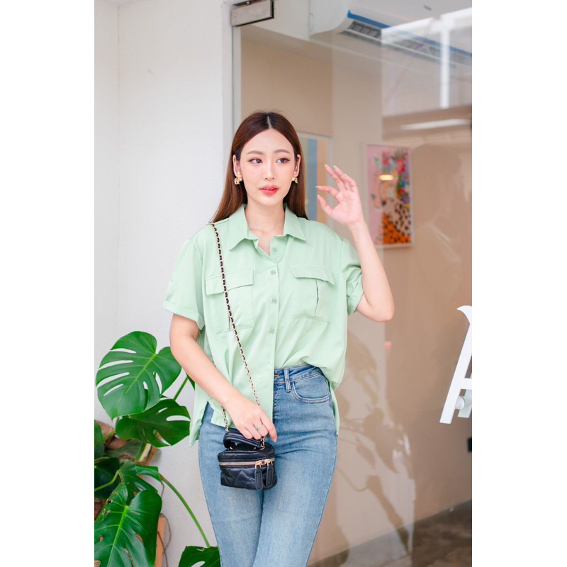 เสื้อเชิ๊ตผ้าคอตตอน ป้าย Topping อก 42