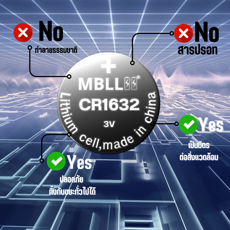 ของแท้ ถ่านกระดุม ลิเทียม ยี่ห้อ mbll CR 1632 1แผง 5ก้อน สำหรับใส่รีโมทรถยนต์ มอเตอร์ไซด์ เครื่องชั่ง นาฬิกาและอื่นๆ