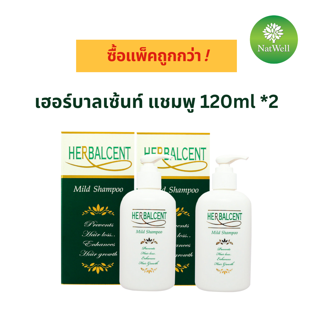 [แพ็คคู่]Herbalcent Mild Shampoo(120 มล.*2)บำรุงเส้นผม และหนังศีรษะ ลดปัญหาผมร่วง ศีรษะมัน สูตรอ่อนโยนผสมคอนดิชั่นเนอร์