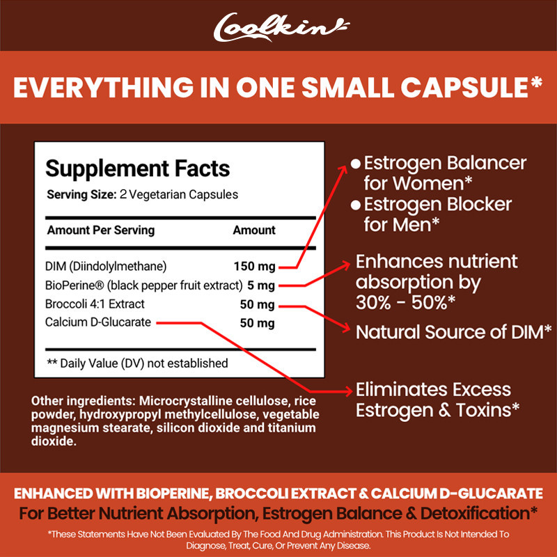 คอมเพล ็ กซ ์ อาหารเสริม Coolkin DIM ประกอบด ้ วยสารสกัดจากบร ็ อคโคลี ่ , แคลเซียมดี-กลูโคเนต, และไพริน