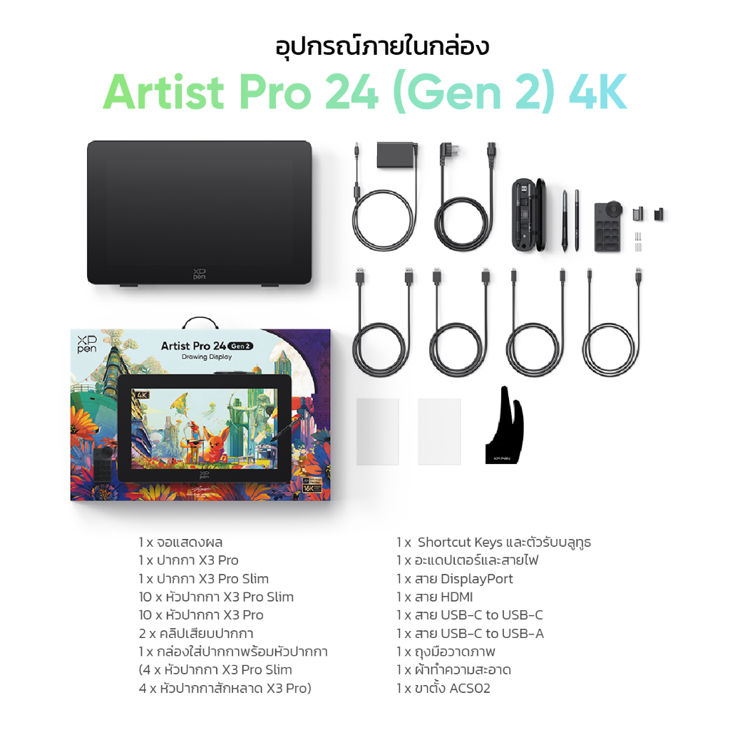 XPPen Artist Pro 24 Gen 2 (เลือก 4K หรือ 165Hz) เมาส์ปากกา จอวาดรูป ขนาด 23.8 นิ้ว แรงกดปากกา 16,384 ระดับ