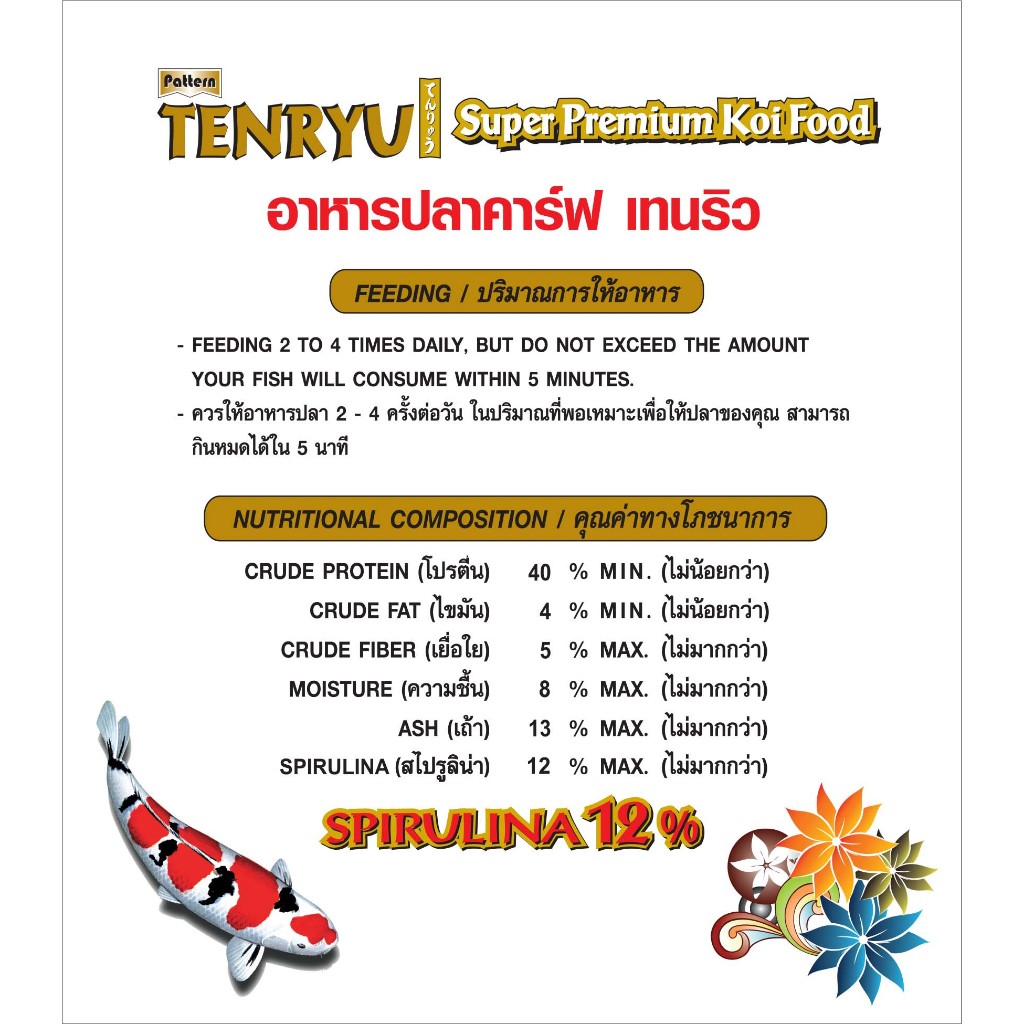 อาหารปลาคาร์ฟ Tenryu / Super Premium Koi Food เท็นริวซูเปอร์พรีเมี่ยม เม็ด 2 มม. ขนาด 1.5 ก.ก. 2 ถุง