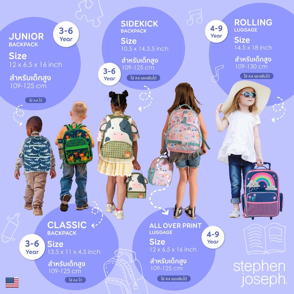 Stephen joseph กระเป๋าเป้เด็ก ยอดนิยมจากอเมริกา ฟรีสติ๊กเกอร์ สำหรับเด็กอนุบาลประถม ALL OVER PRINT BACKPACK