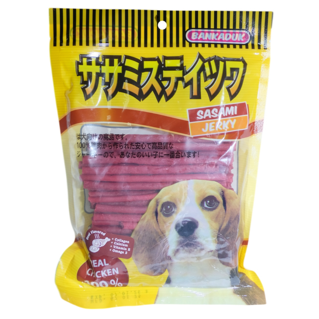 Sasami Jerky ขนมสุนัขซาซามิ เจอร์กี้ มีทั้งหมด 4รสชาติ ขนาดถุงละ 500กรัม