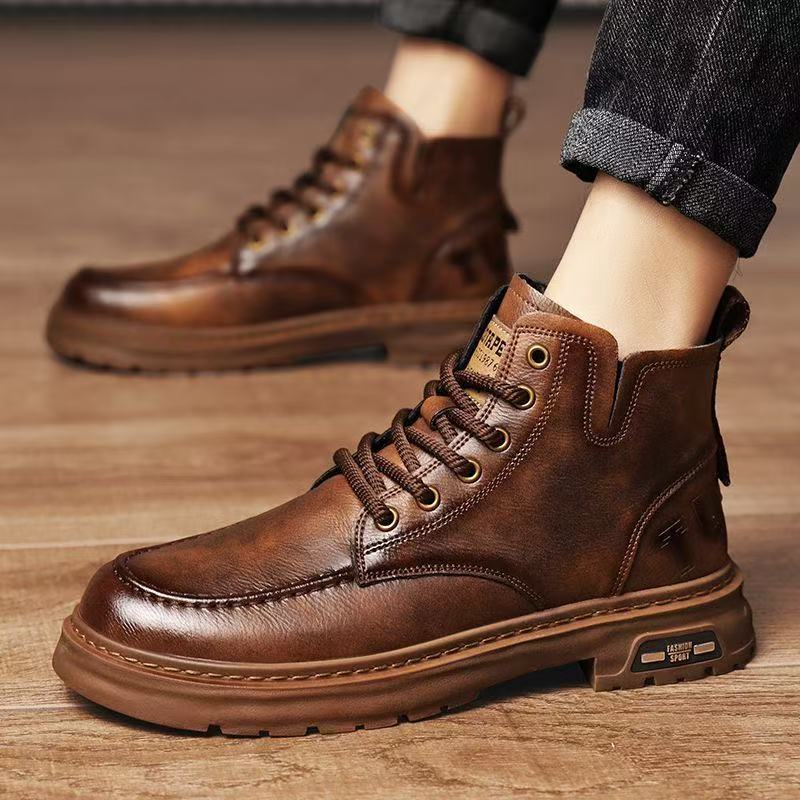 รองเท้าบูทมาร์ตินของผู้ชาย พื้นรองเท้าหนาและทนต่อการสึกหรอ ระบายอากาศได้และเป็นแฟชั่น มี 2 สีให้เลือก