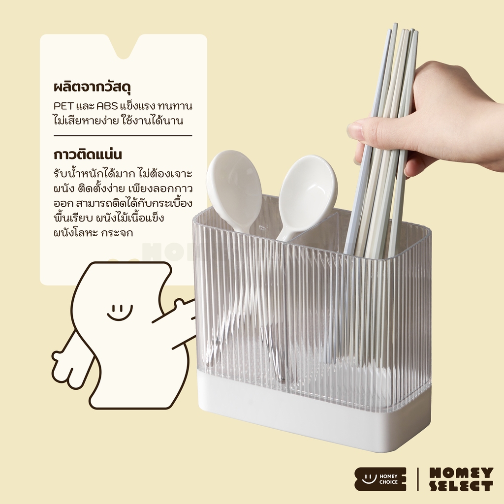 HomeyChoice กล่องเก็บช้อนส้อมตะเกียบและอุปกรณ์รับประทานอาหารติดผนัง อุปกรณ์จัดเก็บในครัว รุ่น 8045