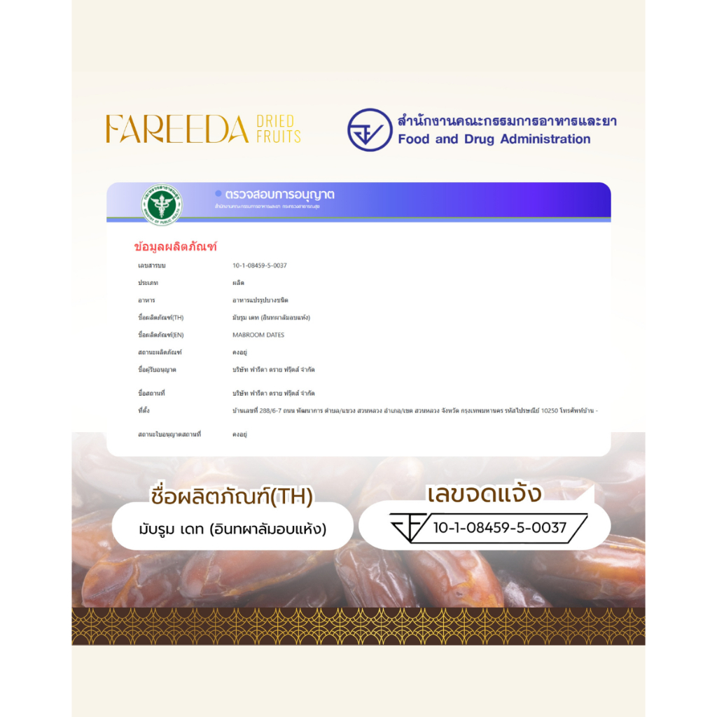 อินทผลัมมับรูม Fareeda หวานจากธรรมชาติ หอมกลิ่นเหมือนคาราเมล กระปุกขนาด 250g.