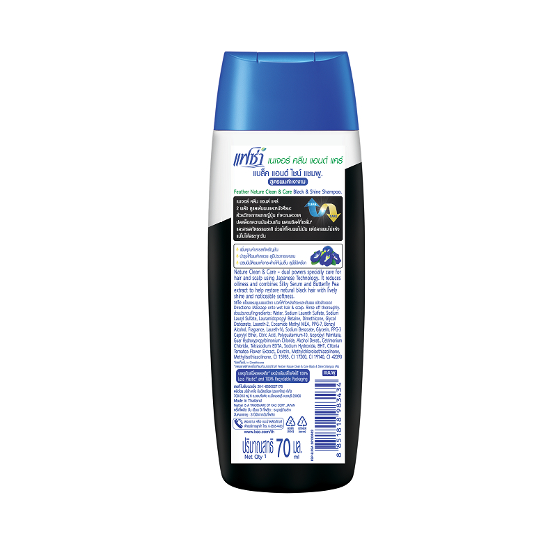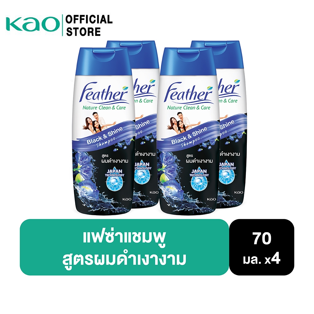 [แพ็ค4] Feather Nature Clean & Care Black & Shine Shampoo. 70ml. แฟซ่า เนเจอร์ แบล็ค แอนด์ ไชน์ แชมพู 70 มล.