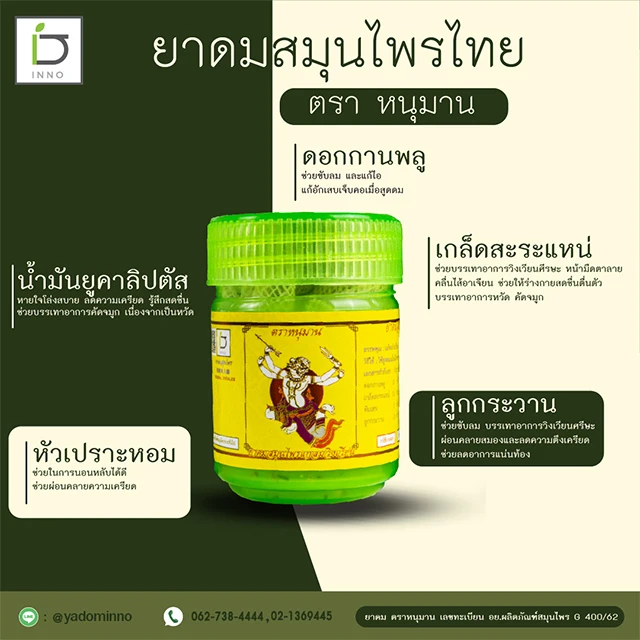 ยาดมตราหนุมาน ขนาด 5 กรัม ยกโหล (แบบแพ็ค 12 กระปุก) Hanuman Brand