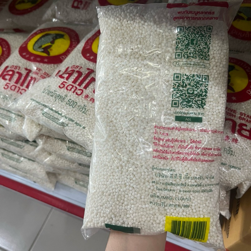 สาคู เม็ดเล็ก ตราปลาไทย 5 ดาว ขนาด 500 กรัม